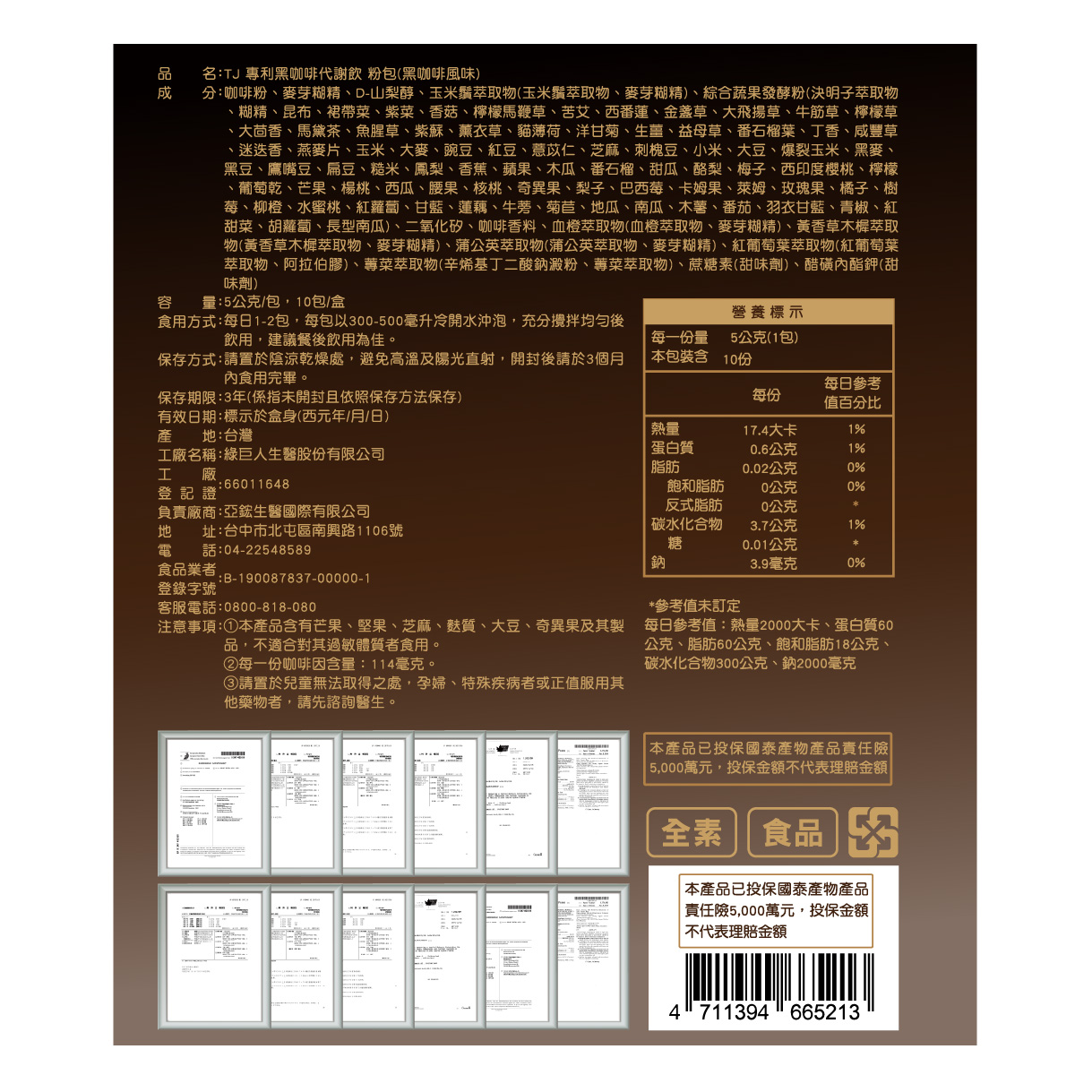 TJ 專利黑咖啡代謝飲 粉包(黑咖啡風味)